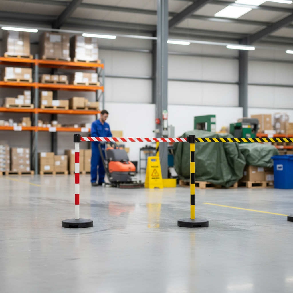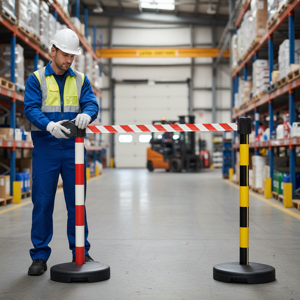 Introducing the Premium Post & Belt Barrier, your versatile solution for effective crowd control and traffic management. This barrier system is designed to meet the needs of various environments, making it ideal for footpath marking, queue guidance, and cordoning off traffic areas in settings such as industrial sites, warehouses, parking facilities, events, and public spaces.