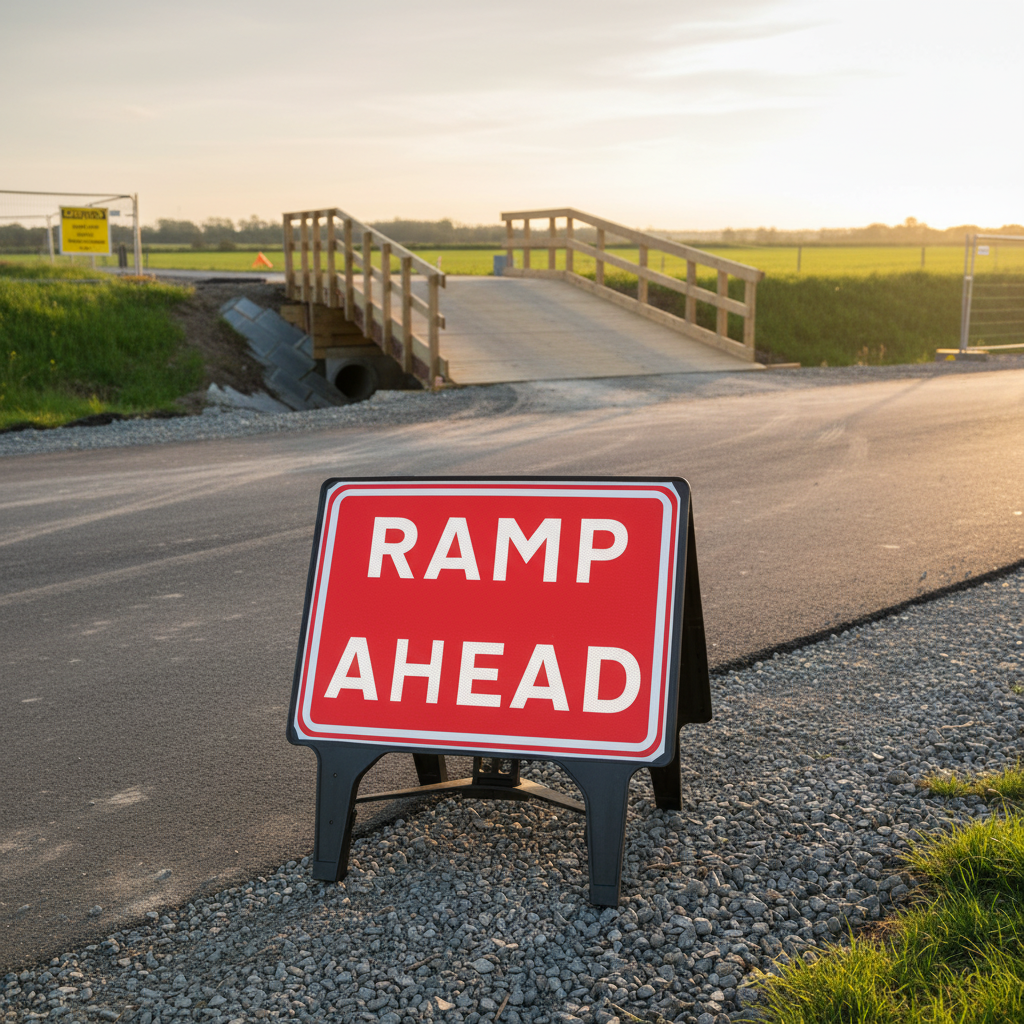 The Premium Ramp Ahead Sign is designed for long-lasting performance with its strong and robust construction. Made from fully recycled polypropylene, this signage not only contributes to environmental sustainability but also offers excellent durability.