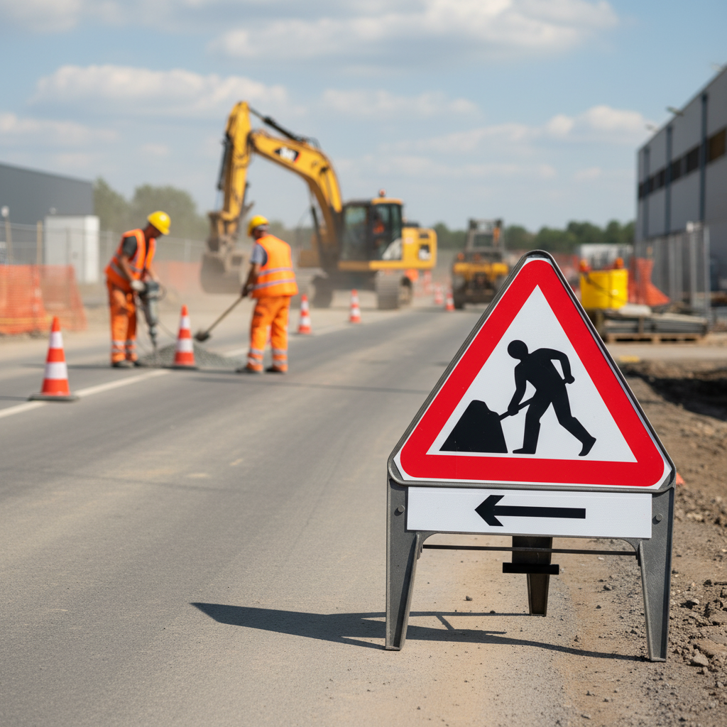 The Premium Men At Work with Arrow Left Supplementary Plate is designed to provide clear communication for traffic management. Engineered for durability, this sign is made from fully recycled polypropylene, ensuring a long-lasting product that does not rust.