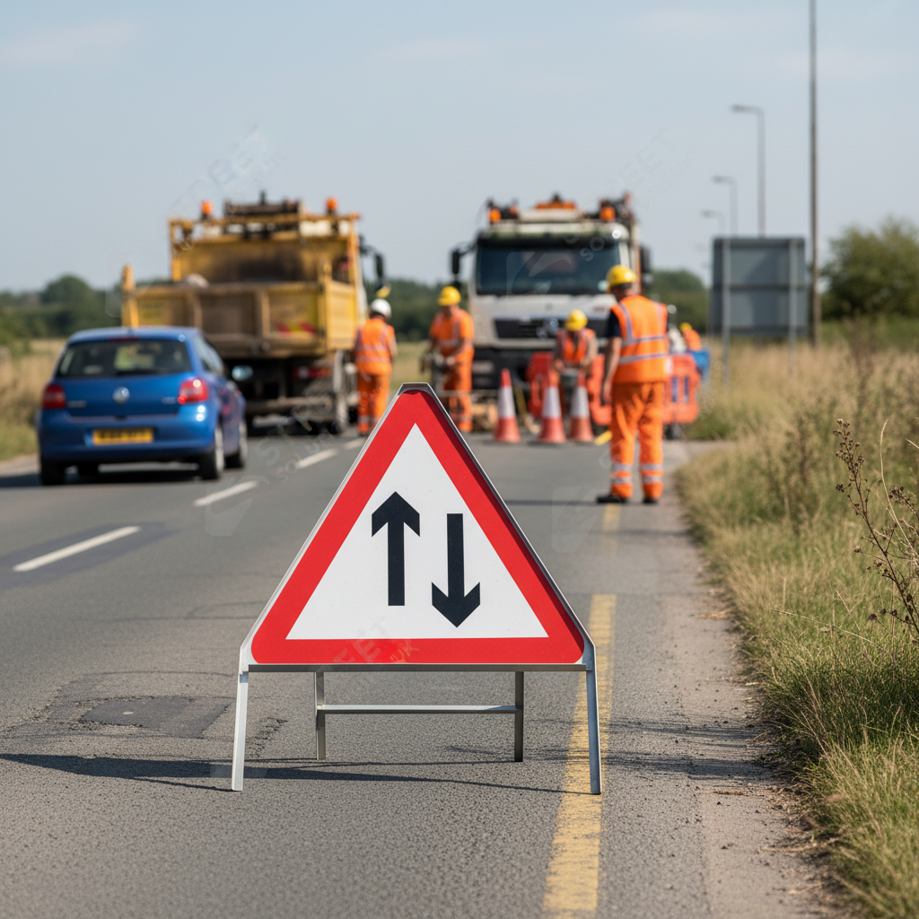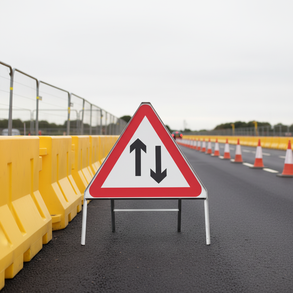 This traffic sign provides clear, visible warnings to drivers, contributing to road safety and efficient traffic flow. Its robust construction ensures durability and weather resistance, making it suitable for outdoor use.