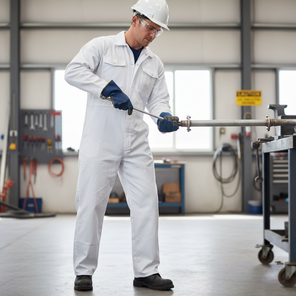 Professional White Boilersuit - Durable Polyester-Cotton Blend with Lay Down Collar