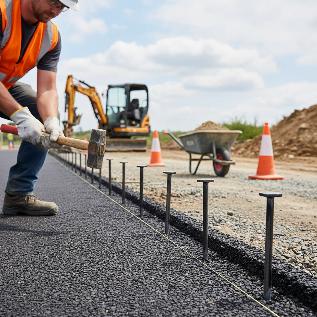 Introducing our durable Heavy Duty Steel Road Pins, engineered to withstand the toughest ground conditions with ease. Crafted from robust round steel and featuring a pointed end, these pins effortlessly penetrate even the most challenging terrain, ensuring reliable anchoring for your road forms. Specifically designed for use with both fixed and rigid road forms, our pins offer versatility and stability, guaranteeing perfect positioning while concrete sets. Available individually, these road pins are essential tools for any construction project requiring precise formwork placement.