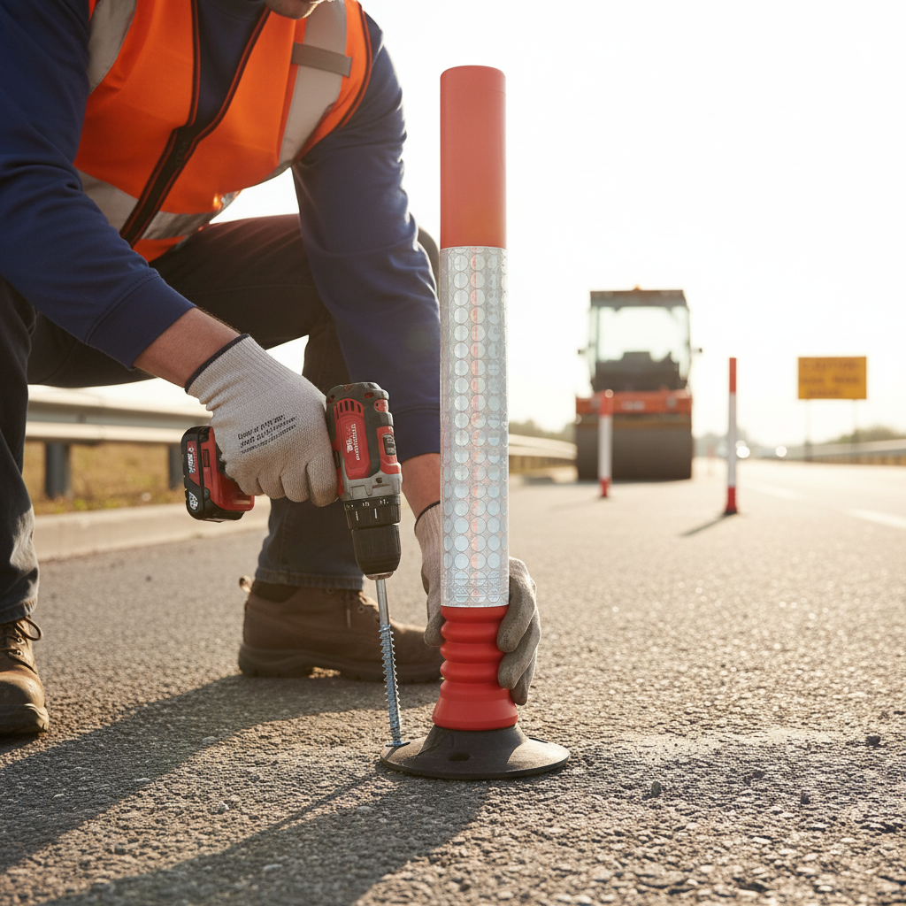 The Premium Traffic Cylinder Delineator Post is a cost-effective and durable solution for traffic management and safety. This product is crafted from tough, flexible LDPE plastic, designed to self-right after impact, ensuring longevity and reliability in various environments.