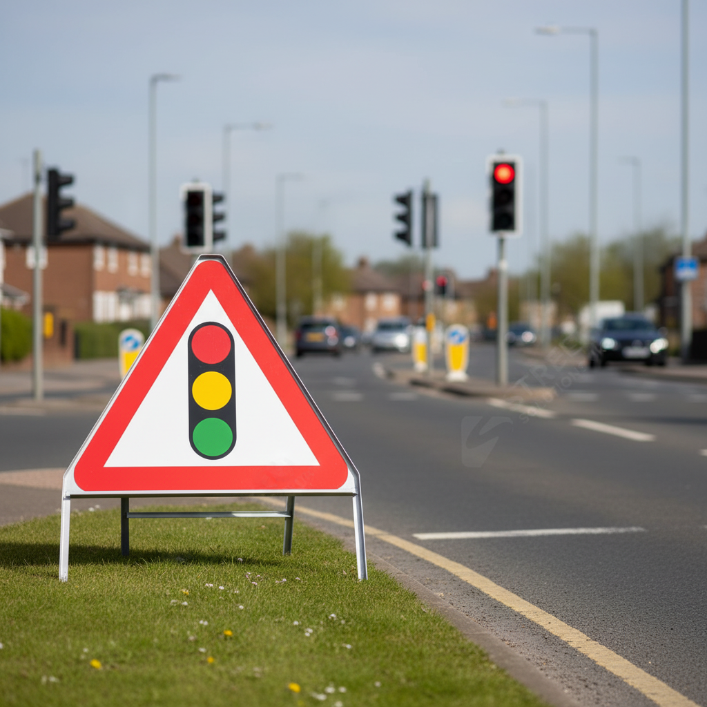 This Traffic Light Signal Ahead Sign is a premium metal road sign designed to enhance road safety by indicating to road users that traffic lights are ahead. Its triangle shape and vibrant colors ensure that it captures attention effectively.