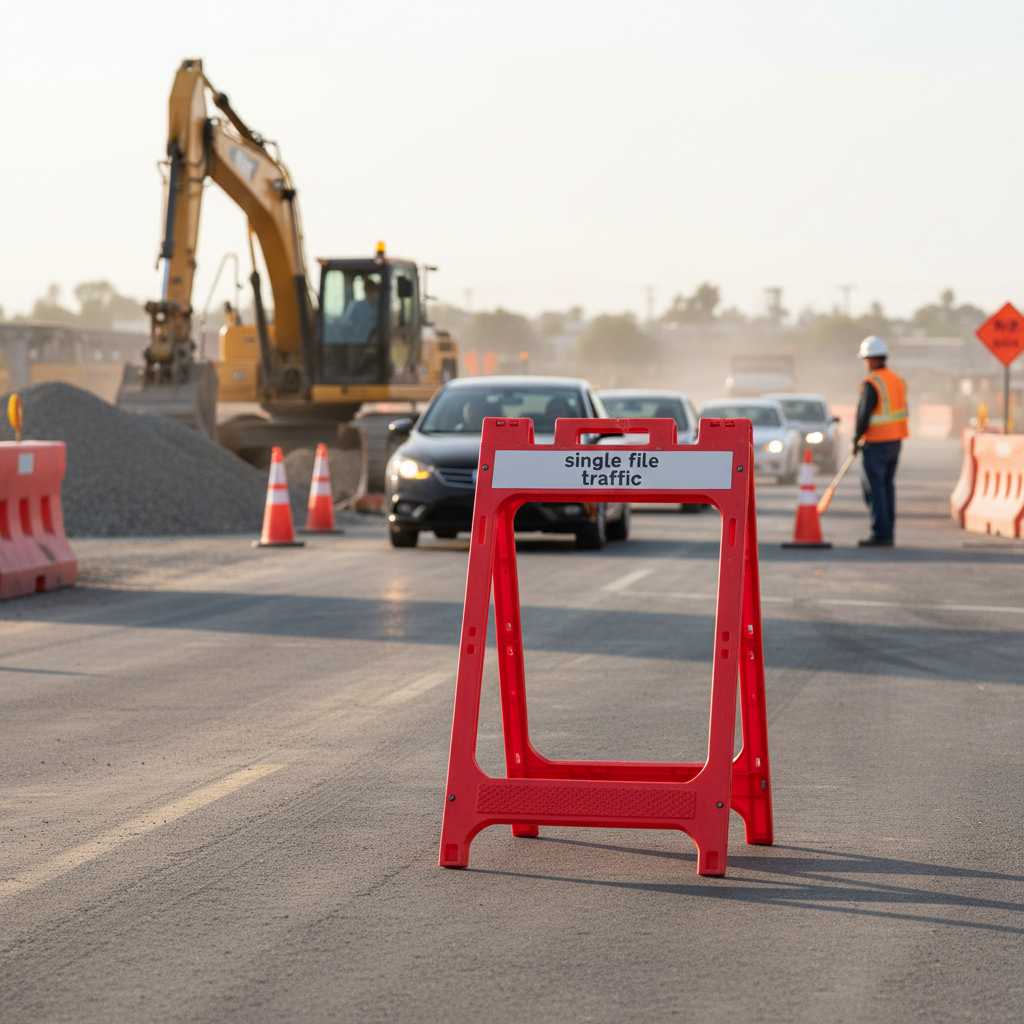The 'Single File Traffic' supplementary plate is designed for use with a supplementary triangle sign. These plates effectively indicate that road works have concluded, ensuring safety and clarity for drivers.