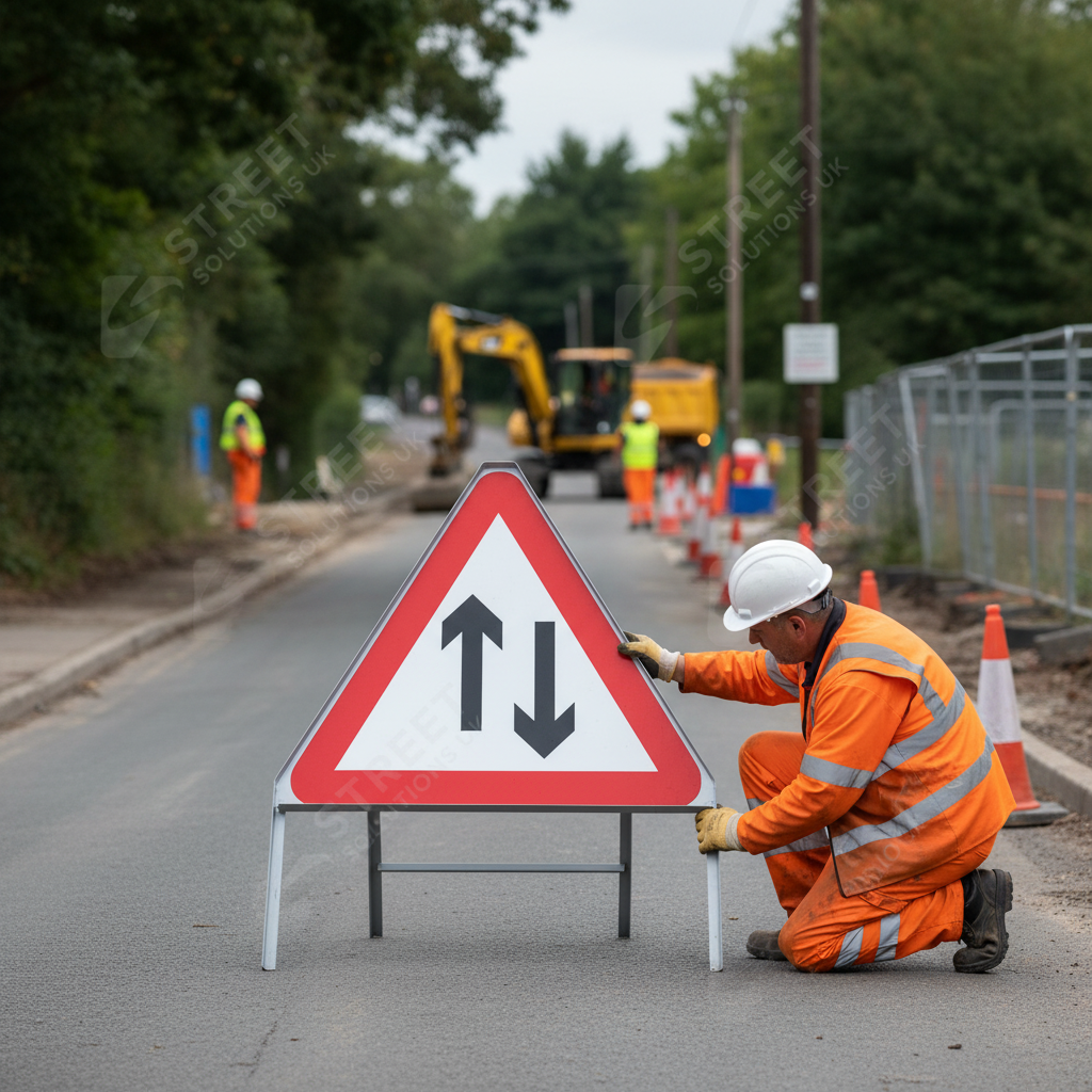 The sign is made of high-intensity workzone zintec retroreflective material which enhances its visibility and ensures it can be seen in low-light conditions.