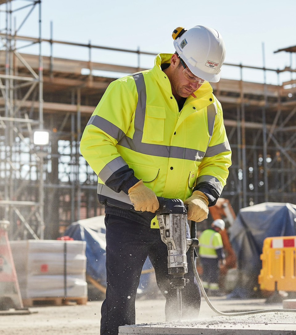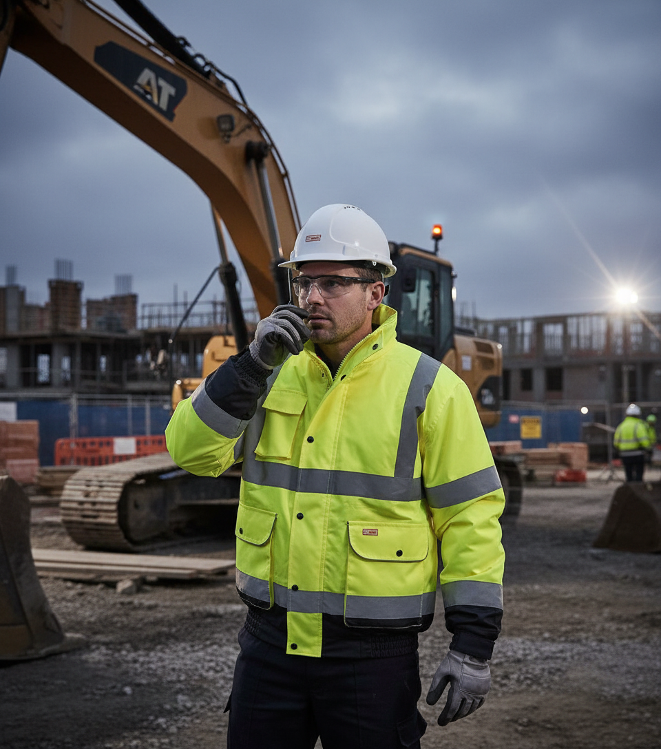 Introducing the Premium Two Tone Constructor Bomber Jacket in bright yellow, designed for optimal visibility and protection in demanding environments. This jacket features a heavyweight two-tone outer shell made of durable polyester Oxford with a PU coating, ensuring you stay dry and comfortable while on the job.