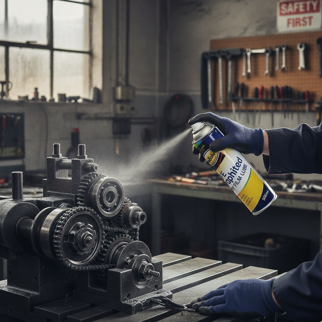 Introducing our Premium Graphited Dry Film Lubricant, perfect for high-temperature, low-load applications. It bonds instantly to metal, rubber, and plastic, creating a dirt-repelling barrier that protects surfaces from pressure and friction. Ideal for gaskets, conveyor belts, motors, and machinery maintenance, it incorporates the benefits of Graphited Dry Film Lube for enhanced performance.