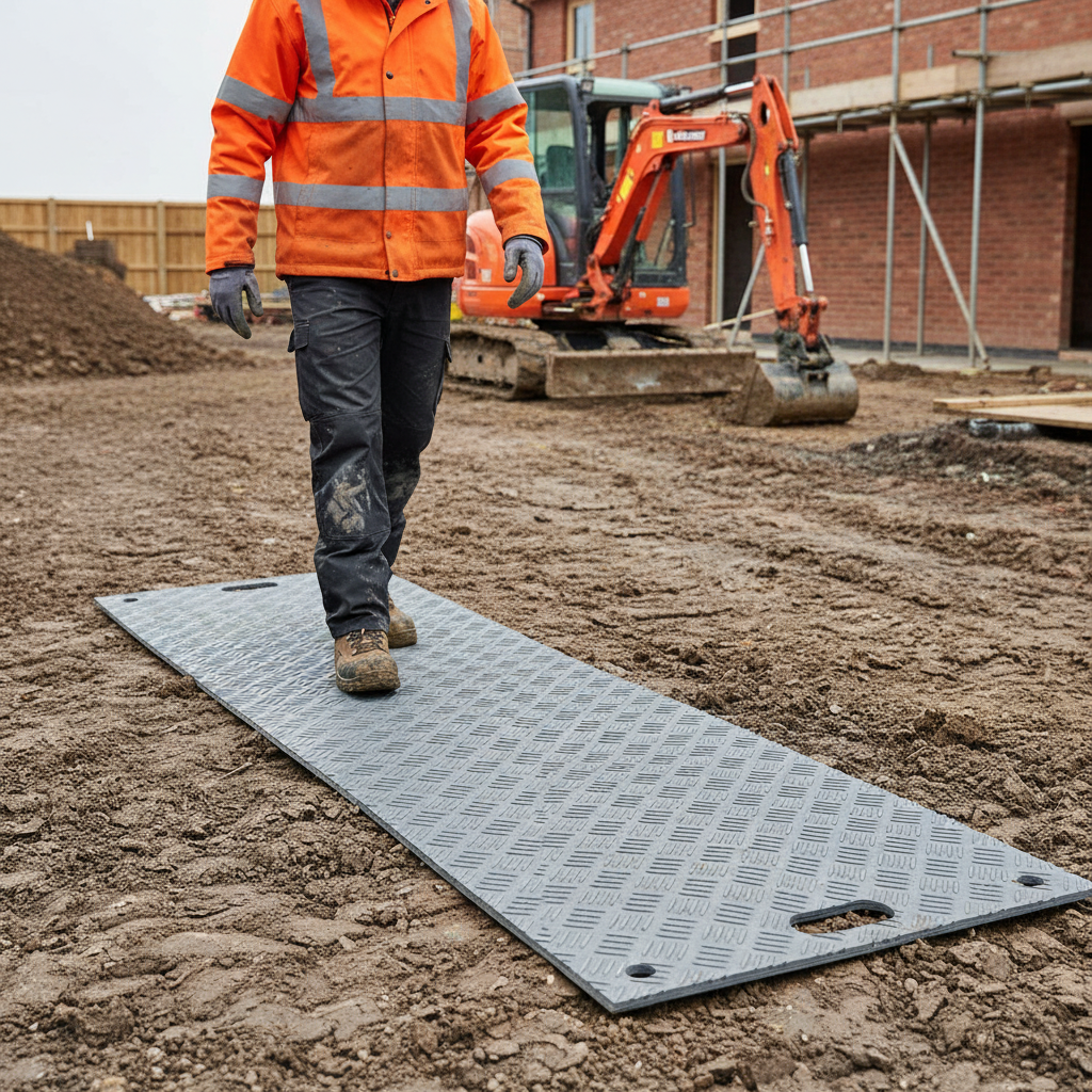 The Premium Medium Duty Access Half Mat is a versatile and eco-friendly solution for temporary access needs. Made from 100% recycled Low-Density Polyethylene (LDPE), each mat weighs just 17kg and can withstand weights of up to 15-20 tonnes depending on ground conditions.