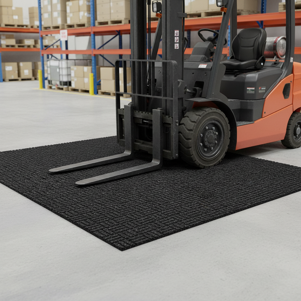 Enhance safety in your workspace with our Heavy Duty Absorbent Anti-Slip Forklift Mat. Designed with an intricate woven surface, this mat achieves maximum absorbency while effectively removing dirt brought in by forklift trucks. It significantly reduces the risk of forklifts skidding or losing control, providing a safer environment for operators and pedestrians alike.