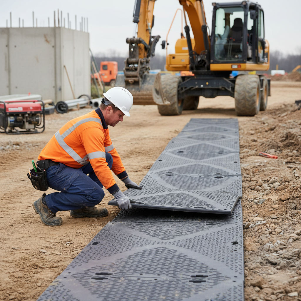 The mat can support a maximum weight of approximately 60-80 tonnes, depending on ground conditions.