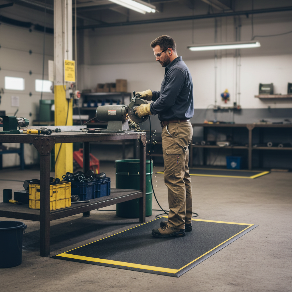 - Light-duty industrial anti-fatigue mat with options for yellow safety borders or plain black.