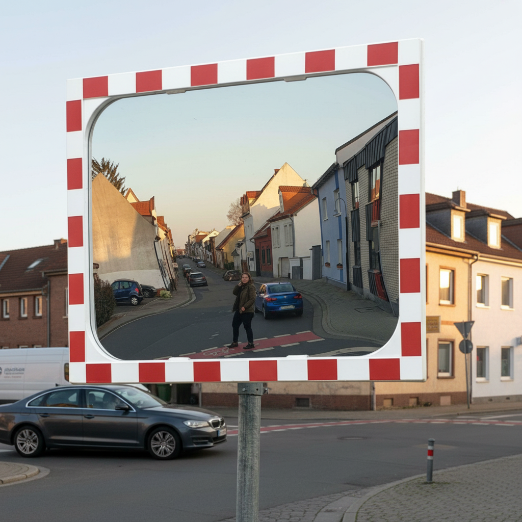 This high-performance glass traffic mirror is designed to provide sharp, minimal-distortion reflections for enhanced visibility and safety. Constructed using safety glass, it shatters into fine grains rather than dangerous shards, making it a safer choice for various environments.