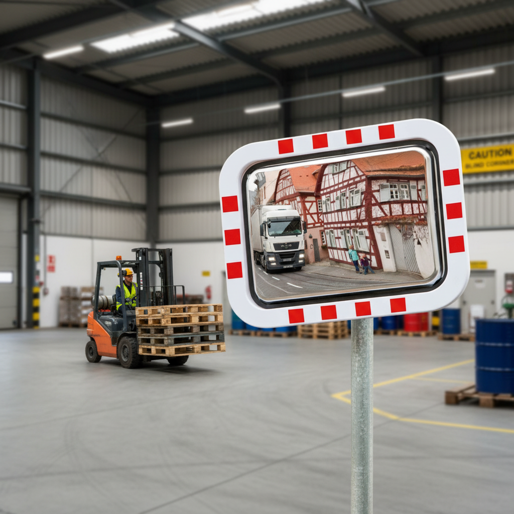 This mirror is suitable for both indoor and outdoor use, making it ideal for warehouses, logistics centers, and production facilities.