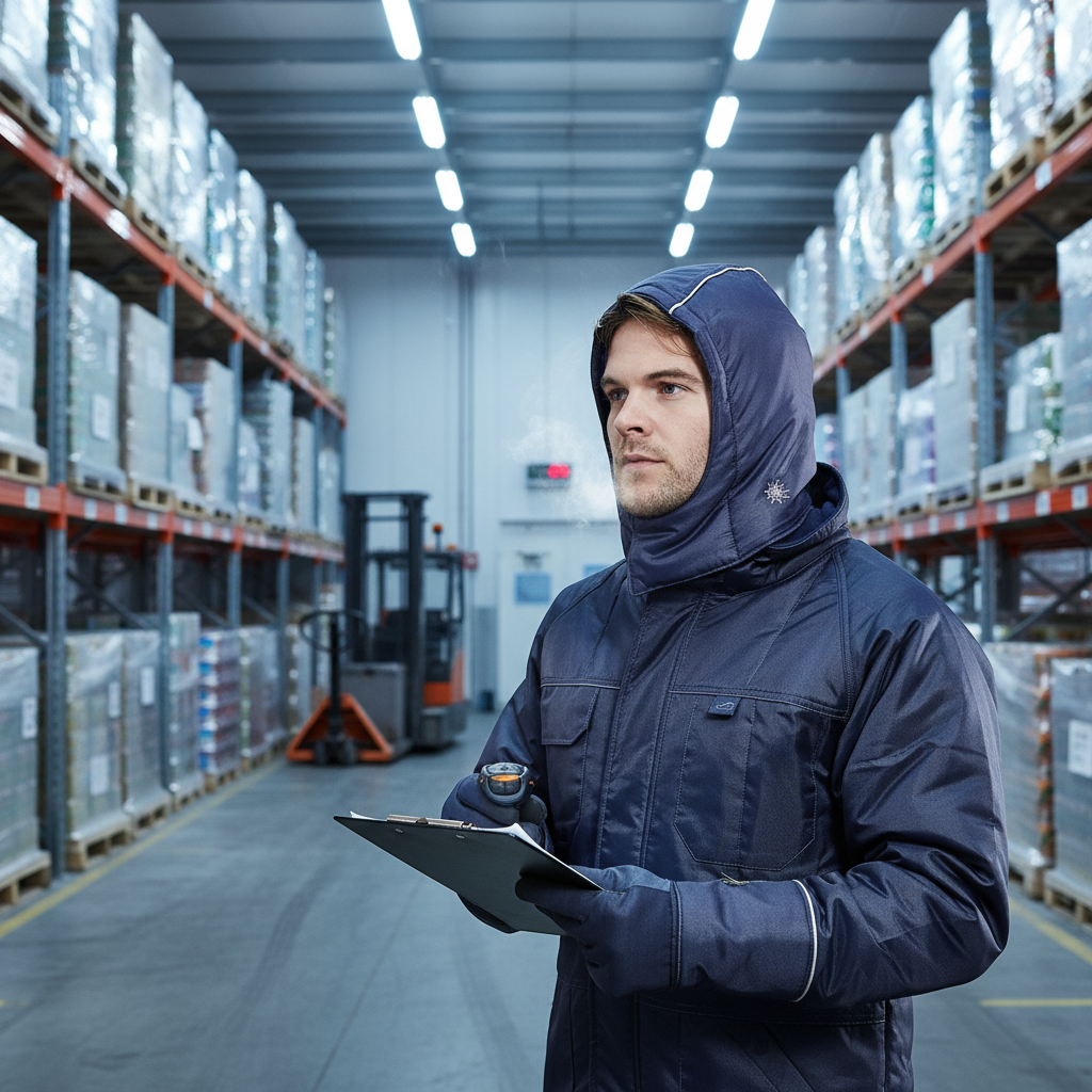Its versatile design includes stud fastenings, facilitating easy attachment to coveralls, jackets, or long coats, enhancing adaptability across various work settings where thermal insulation is paramount.