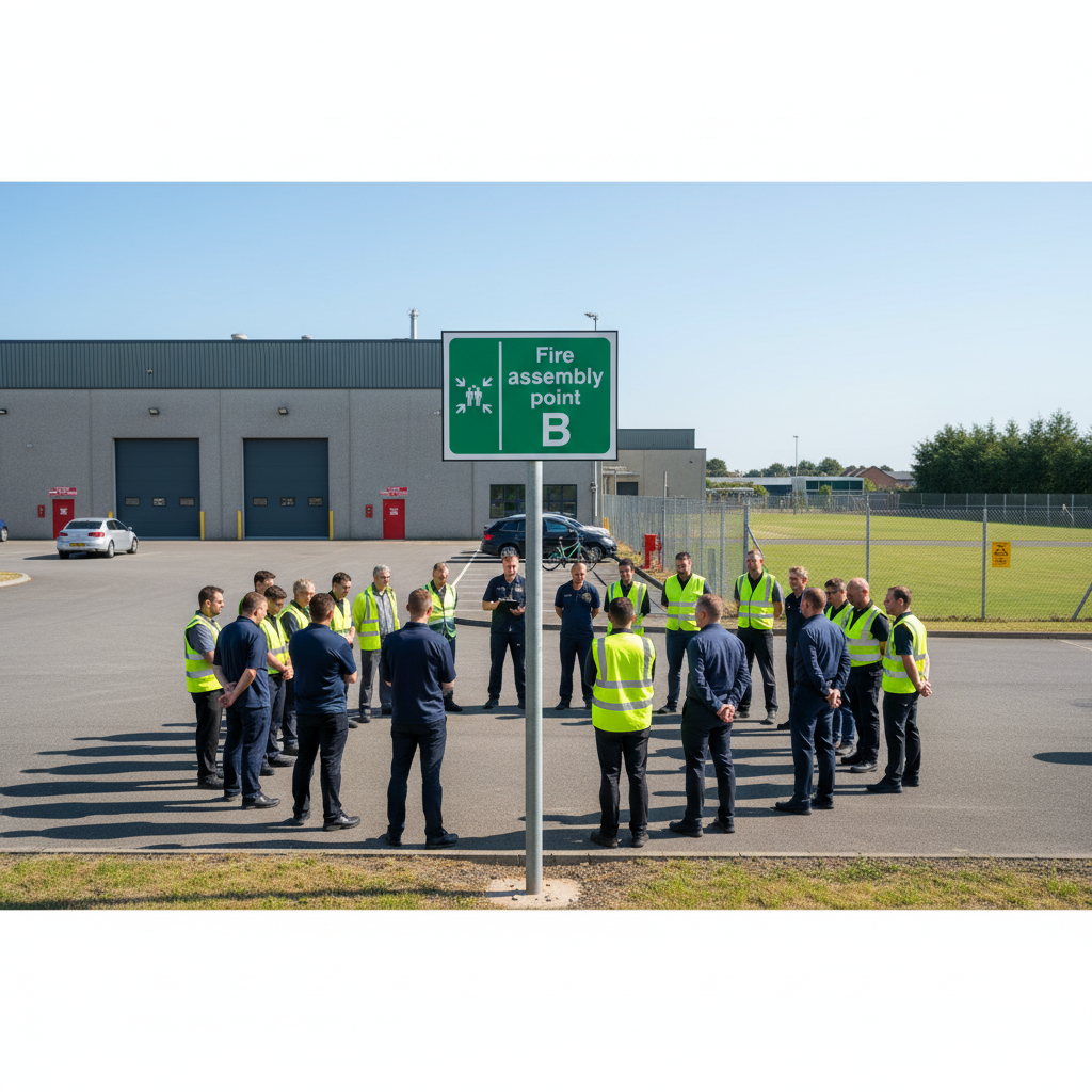 The Premium Fire Assembly Point B Sign is essential for guiding individuals to designated gathering locations during fire evacuations. This sign clearly indicates the assembly point labeled 'B', ensuring a safe and organized response in case of emergencies.