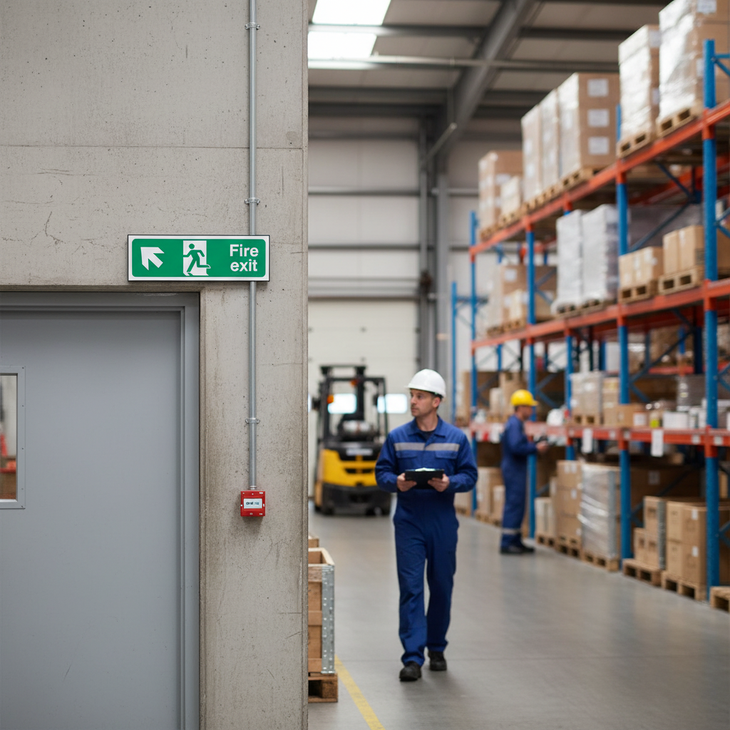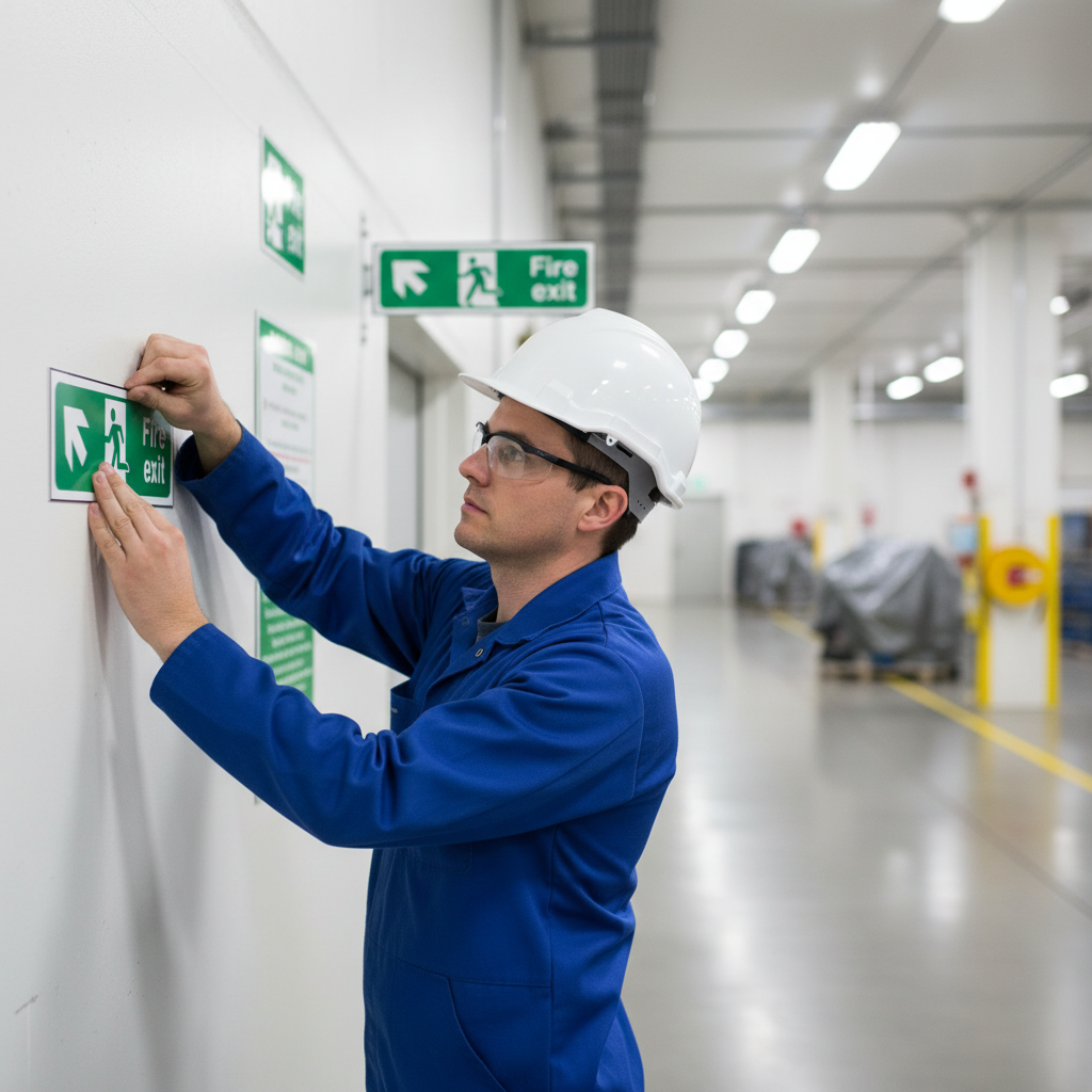 This sign can be installed in various locations like hotels, warehouses, and kitchens to guide individuals to safety.