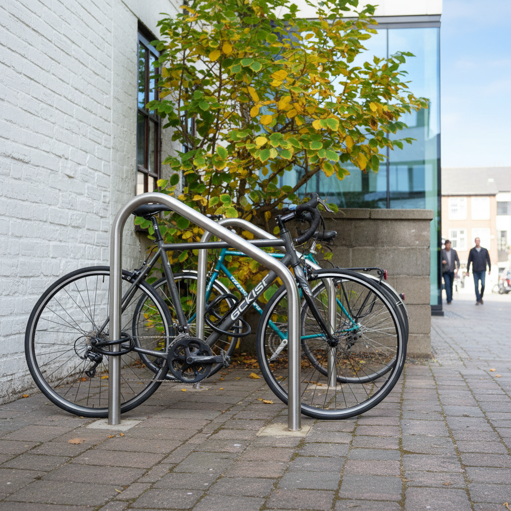 The Heavy Duty Tubular Cycle Stand is a reliable solution for securing two bicycles effectively. Its robust design allows users to lock their bicycles securely using their own security locks. This stand is practical and durable, making it ideal for various environments.