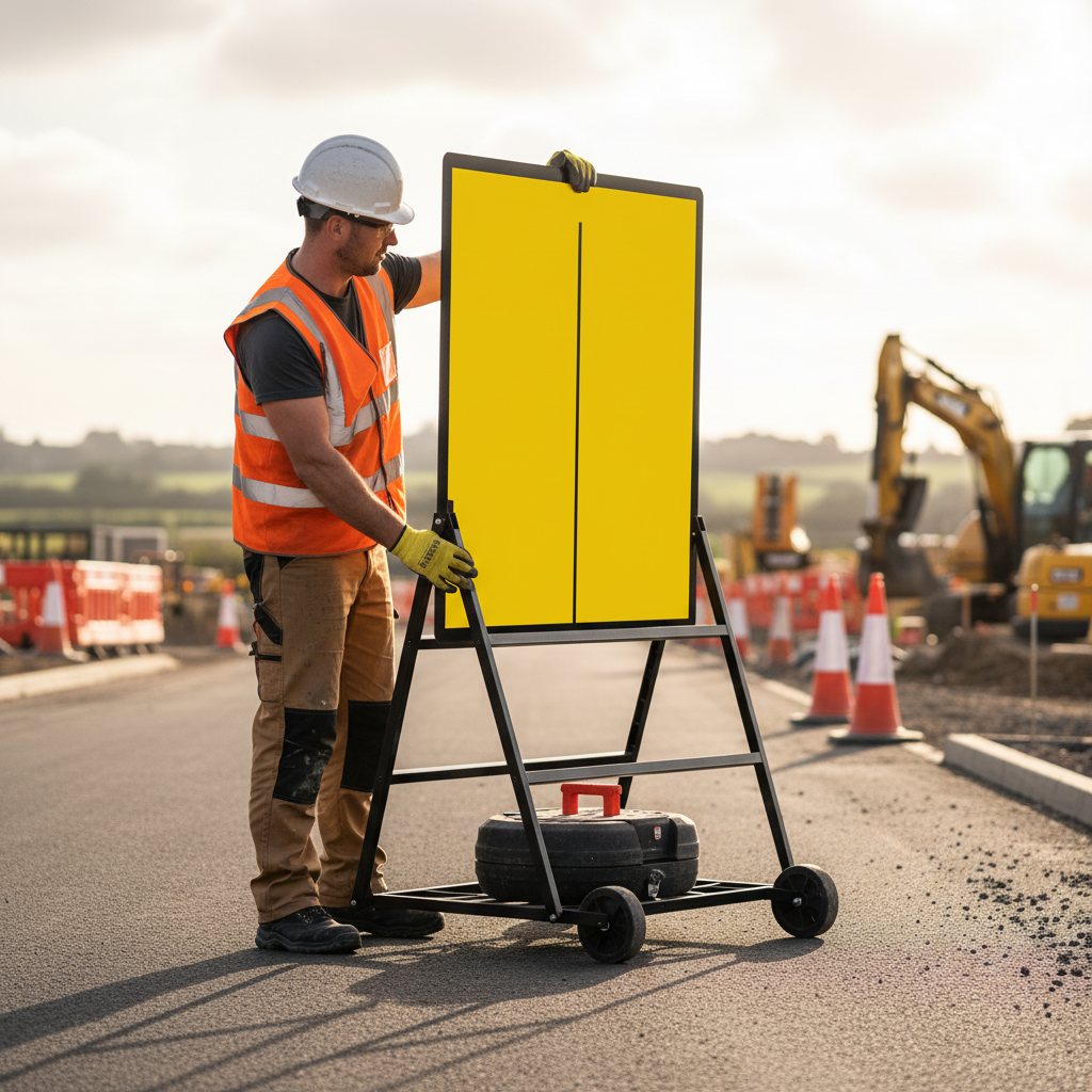 - Custom Scotchlite: This sign can be finished with any sign face you require to match your corporate branding or event theme. Includes fully customizable text printed to suit your needs. Bespoke graphics are also possible; just select the option when choosing your sign.