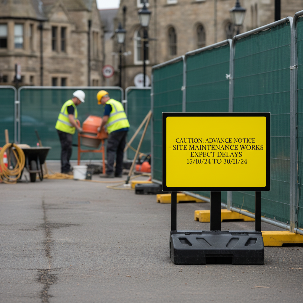 - Custom Scotchlite - The sign can be finished with any sign face required to match your corporate branding or event theme, including fully customizable text. Bespoke graphics are possible as well.
