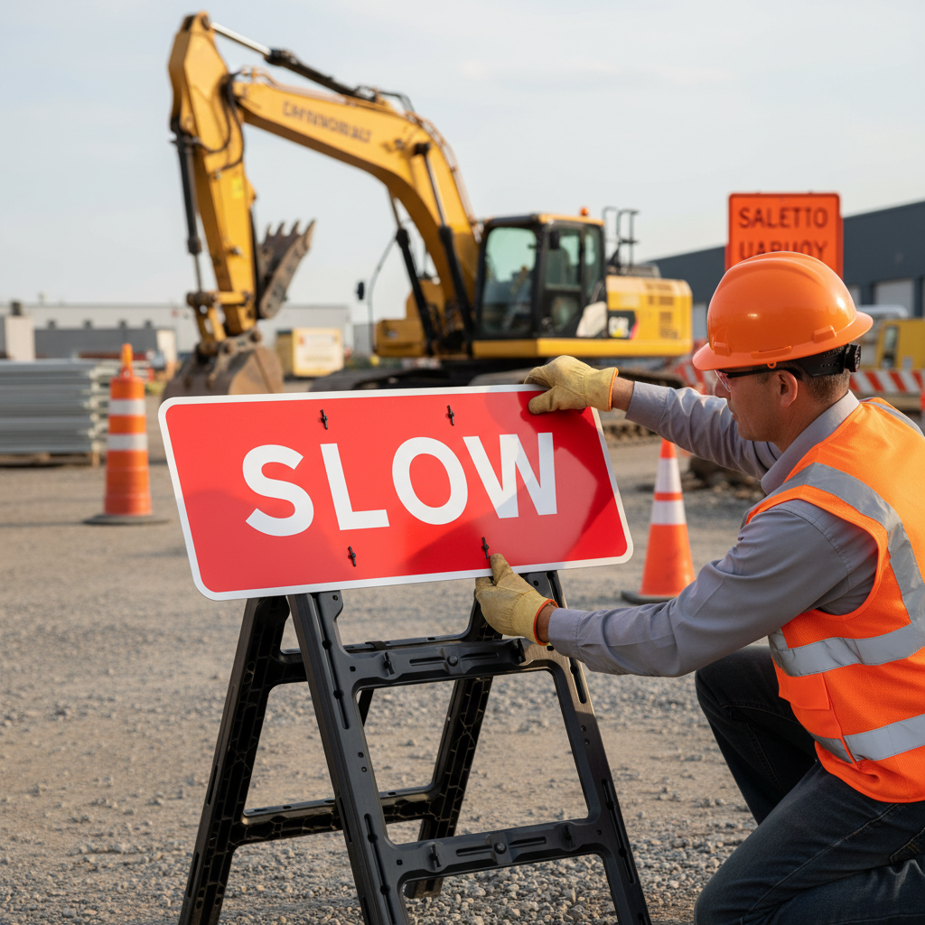 The Premium Quick-Fit Sign Face is specifically designed to caution traffic about the need to reduce speed. This sign is essential for situations where a sudden decrease in road level occurs or other conditions necessitate a lower speed limit.