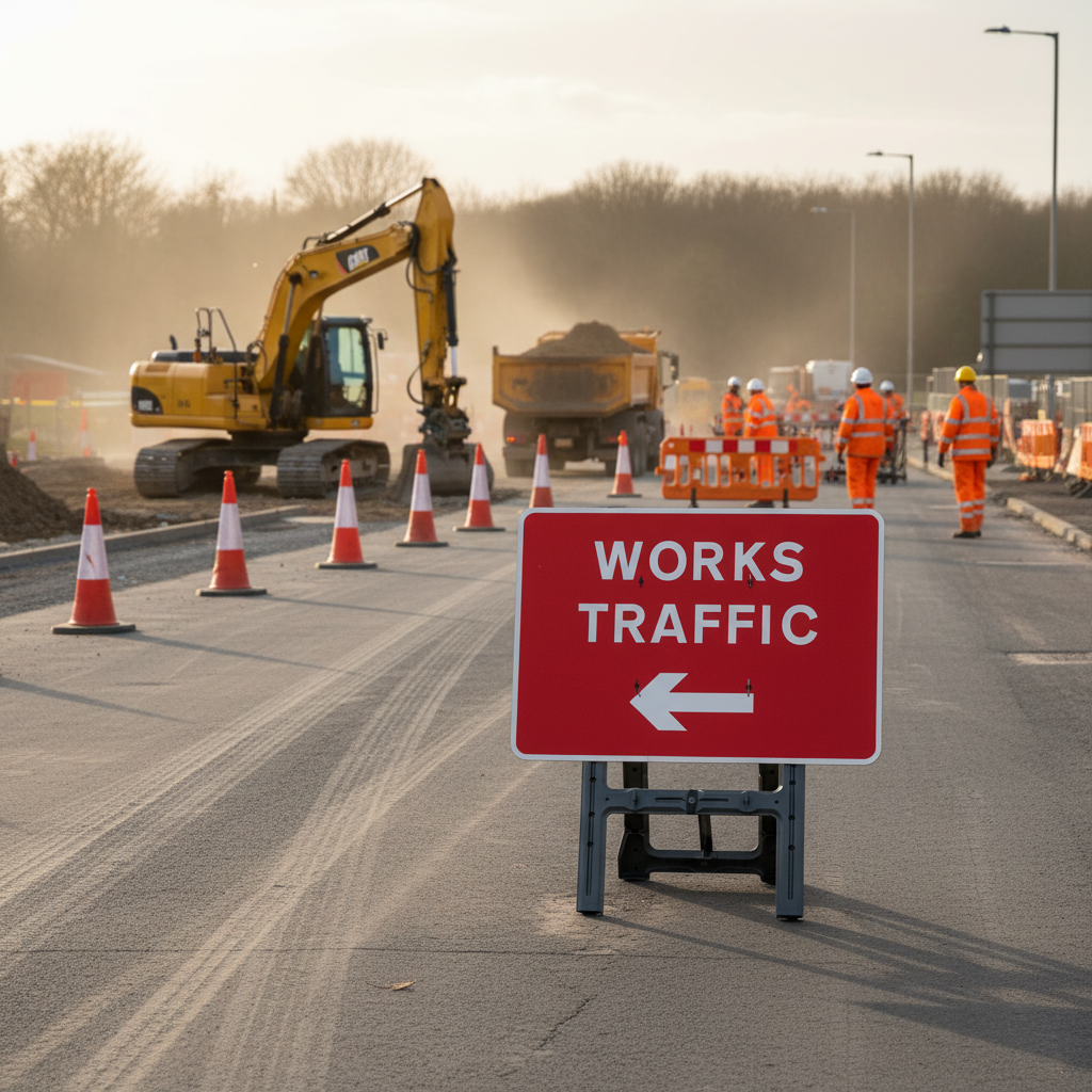This sign is used to direct traffic safely around construction and site works.