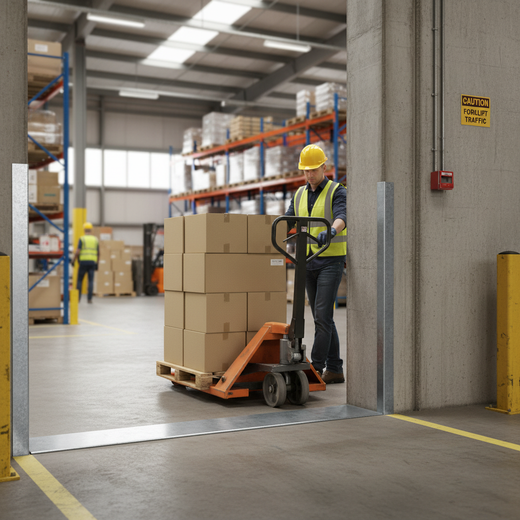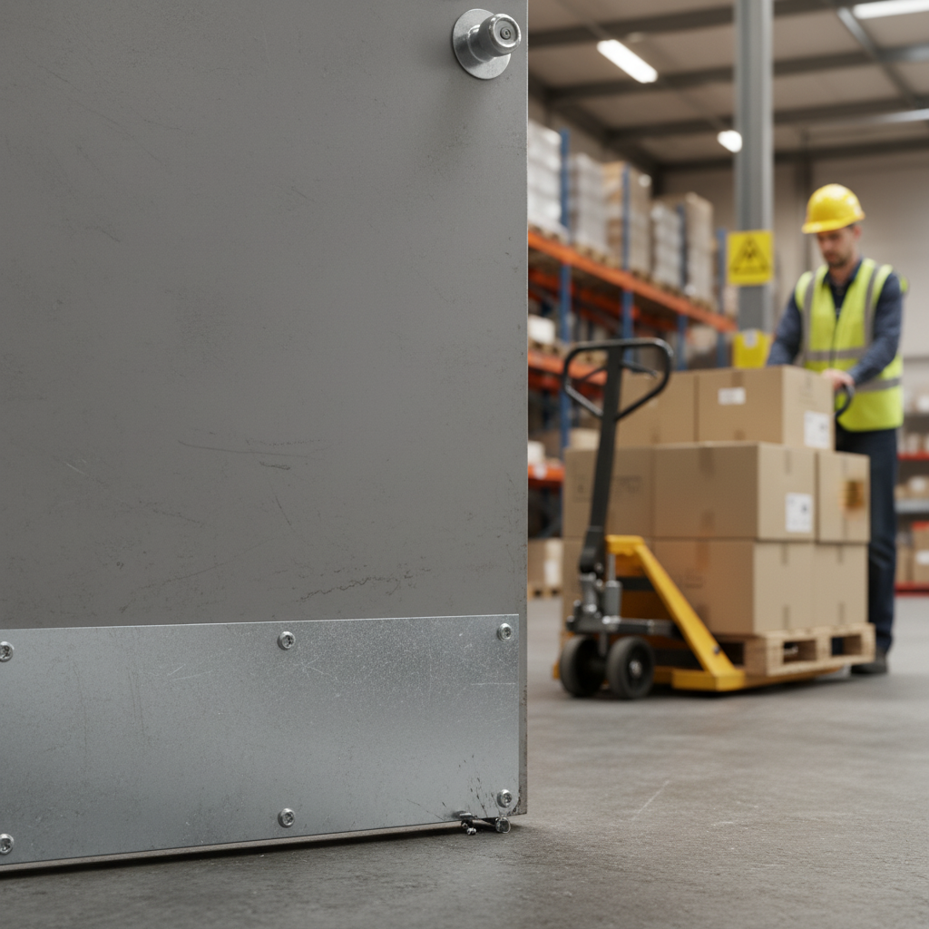 A kickplate is used to protect the lower part of doors and walls from damage caused by foot traffic or equipment.