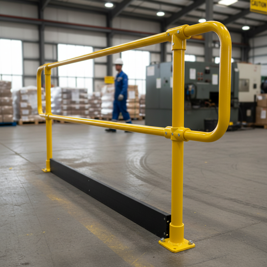 The finished top rail height of this post is 1100mm, featuring horizontal rail centres at 500mm. This configuration is typically used with a 150mm tall kickplate or toeboard, ensuring compliance with relevant standards.