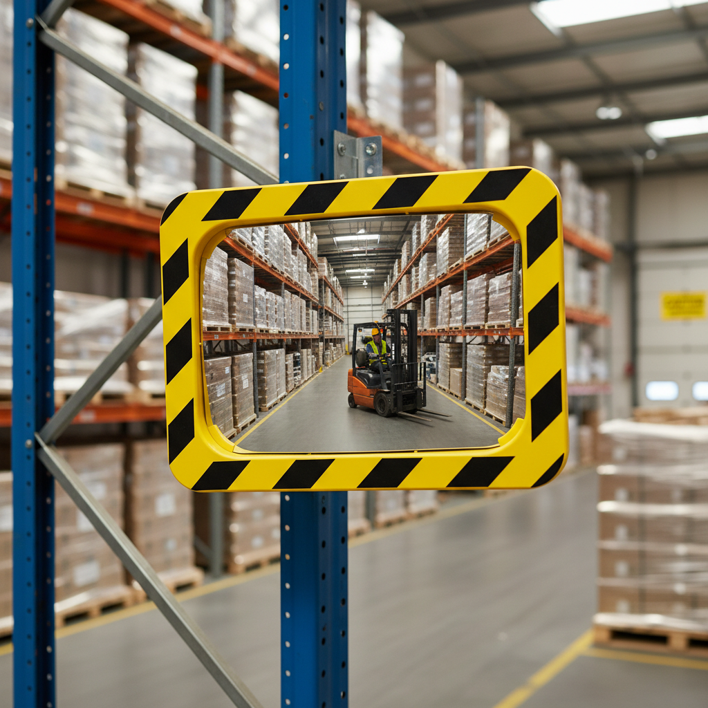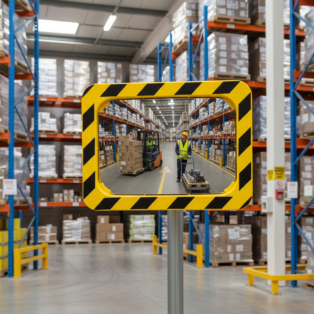 This premium rectangular safety mirror is designed for optimal visibility and safety in both driveways and warehouses. Its robust construction ensures durability and reliability, making it an essential safety tool.