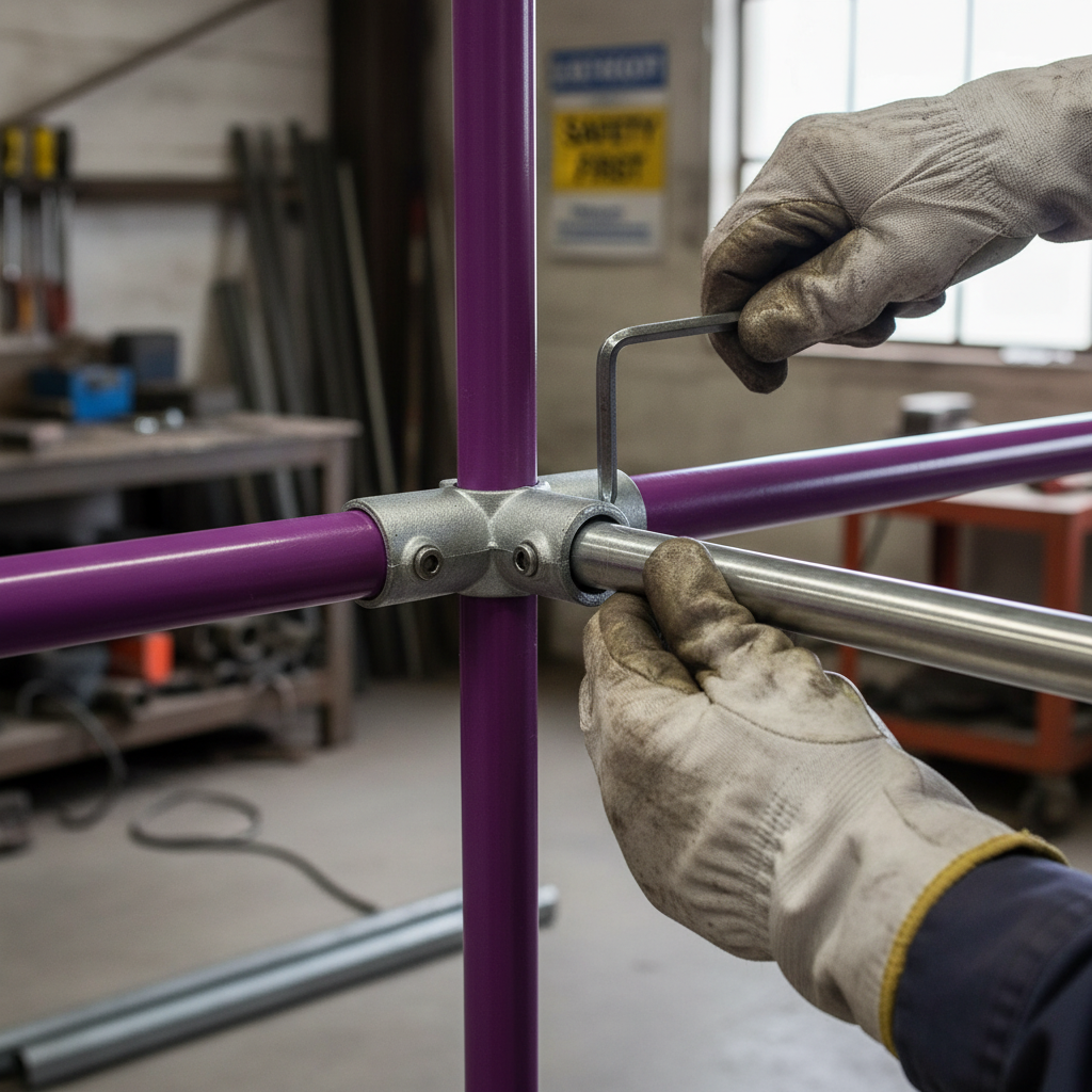 The Premium 48.3mm Retro Fit Side Outlet Tee Key Clamp is designed for creating robust and aesthetically pleasing modular structures. This key clamp is constructed from malleable iron castings, ensuring high durability and versatility in various applications.