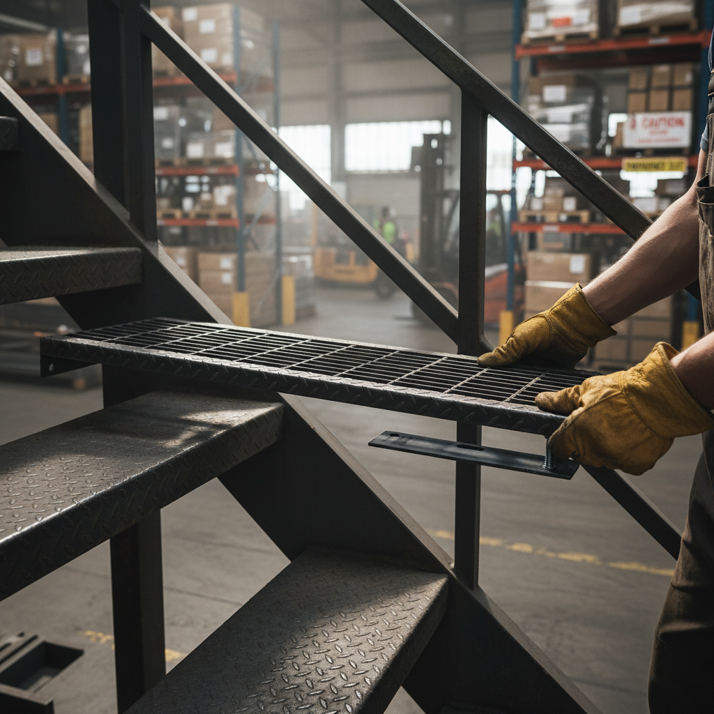 Premium Open Steel Stair Treads with Durbar Nosing and Customizable End Plates for Enhanced Safety